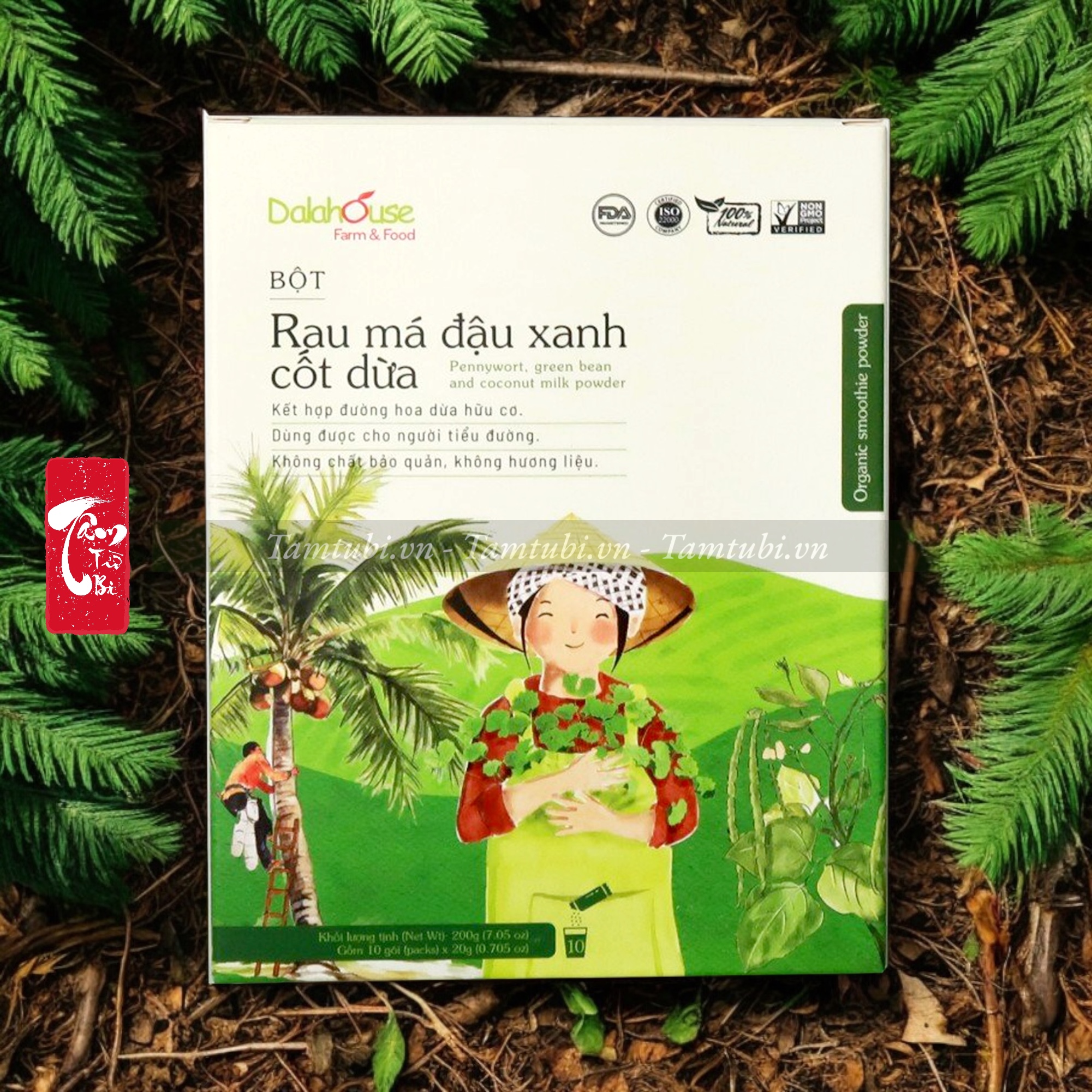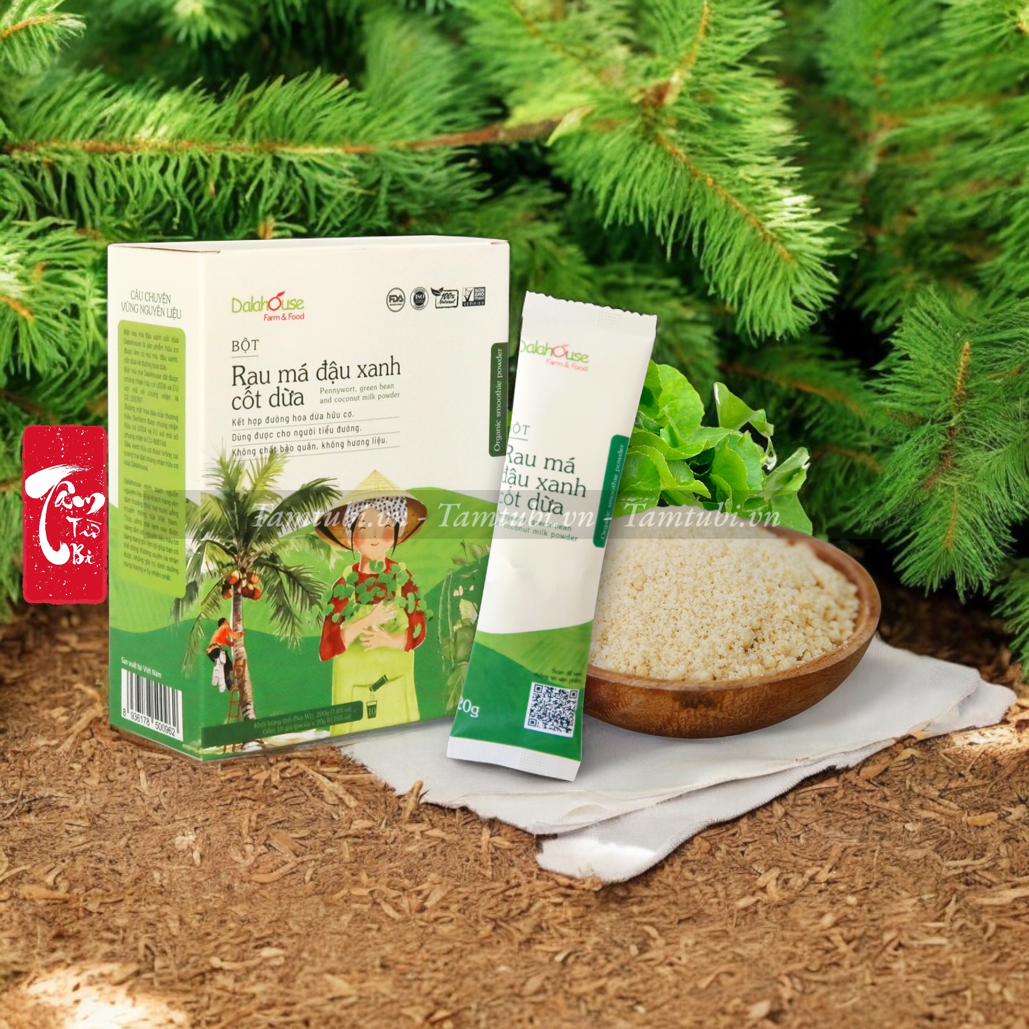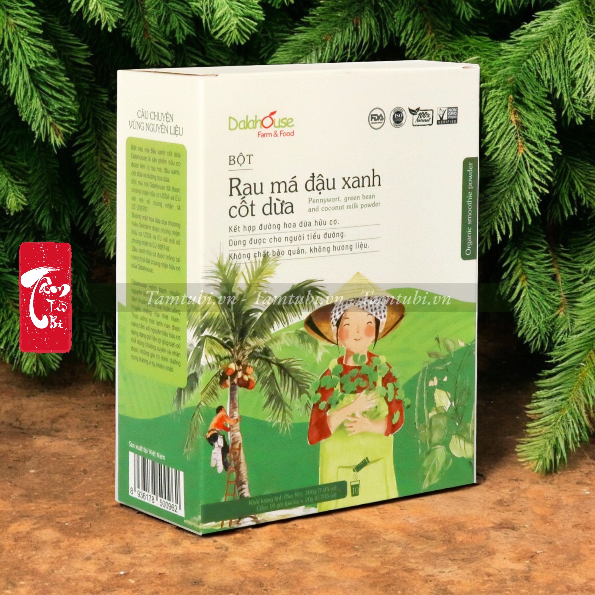 Bột rau má đậu xanh cốt dừa Dalahouse là sự kết hợp hoàn hảo giữa rau má tươi mát, đậu xanh bổ dưỡng và cốt dừa béo ngậy, mang đến thức uống thơm ngon và giàu dinh dưỡng