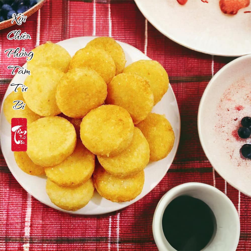 Món xôi chiên phồng thơm ngon có màu vàng tươi đẹp mắt, vỏ giòn tan cùng phần ruột thơm nức vị đậu xanh.